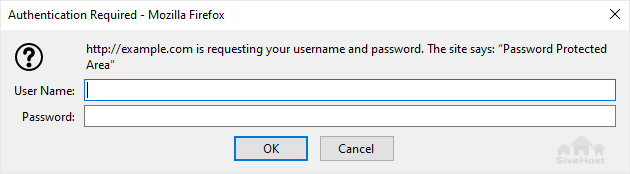If you try to open the password-protected directory in your browser via the URL www.example.com/myfolder, your browser prompts for credentials.