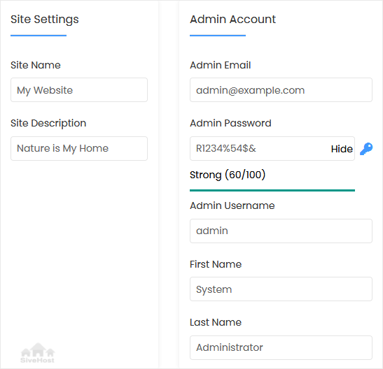 - Site Name: Enter the name of your website, such as my first website.