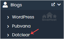 4. On the left side, locate the Blogs category. Click on it and then on the Dotclear link that appears.