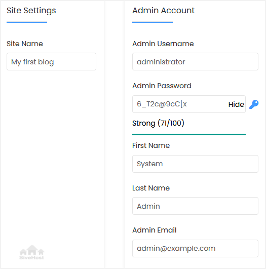 - Admin Email: Your e-mail address.