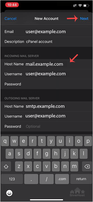 Hostname: Your domain name such as example.com